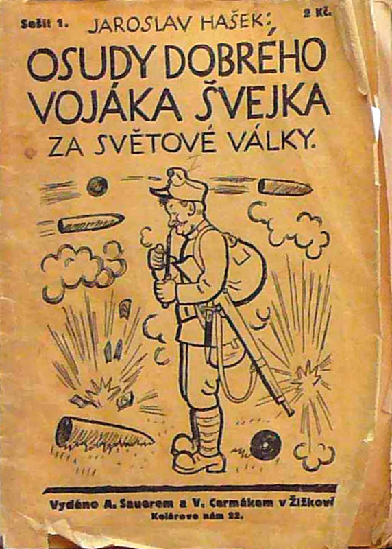 Haška někdejší přátelé „zasklili“ po kampani novin Národní listy, Národní politika i České slovo, které psaly o jeho zvěrstvech v bolševickém Rusku. Hašek byl ale pln dojmů a povzbuzen – byť negativní – publicitou se pustil do svého životního díla. „Švejk“ vznikal po žižkovských hospodách, především v Šnorově hospodě v Husitské ulici 74, provozované světoběžníkem Karlem Šnorem. Haškovi se ale nepsalo lehce. Dříve než nějakou příhodu zapsal, vyprávěl ji hostům. Na druhý den ji vyprávěl zase v jiné putyce jiným hostům, sledoval reakce a až pak ji zaznamenal. Lví podíl na prvním vydání měl Franta Sauer, přítel bohém, anarchista i osnovatel pádu mariánského sloupu na Staroměstském náměstí (1918). Hašek mu vydání tak trochu vnutil. Sauer viděl ve Švejkovi úspěch, proto Haška nutil k psaní – jednou ho dokonce zamkl v bytě. Hašek u něj tehdy bydlel se svou ruskou ženou Šurou (Hašek po návratu nebyl shodou šťastných okolností souzen pro mnohoženství). První sešitové vydání vydal s fotografem Václavem Čermákem a prodávalo se po hospodách a dílnách. Sauer, tehdy zámečník, rozprodal, co mohl, aby měl na tisk. Obálku nakreslil Josef Lada, se kterým v roce 1914 Hašek žil. Cena byla 2 Kč.