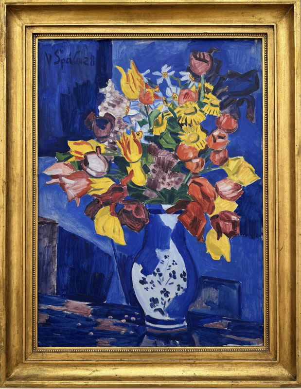 Výstava „Kytky“ nabízí soustředěný pohled na jednu z nejcharakterističtějších poloh Špálovy tvorby. Květinová zátiší tvoří nejrozsáhlejší část jeho díla, vzniklo jich téměř osm set. Vystavený soubor přibližně osmdesáti maleb z veřejných i soukromých sbírek ukazuje, jak se tento zdánlivě tradiční motiv proměňoval během dvou desetiletí Špálovy tvorby. Autorovy kytice nejsou jen dekorativním motivem. Malíř v nich zkoumal možnosti barvy, kompozice i malířského gesta. Květiny ve vázách či džbánech se proměňují v dynamické a barevné struktury, v nichž se střetává výrazná modř, sytá červeň i kontrasty světla a stínu. Právě v těchto obrazech se naplno projevuje Špálův osobitý rukopis, spojující moderní malířské principy s citlivým pozorováním každodenních předmětů. Výstava zároveň připomíná, že Špála své obrazy systematicky evidoval a sám hodnotil. Některé z kytic označil jako zvlášť cenné a ty dnes patří k vrcholům jeho tvorby. Expozice tak umožňuje sledovat nejen proměny motivu květin, ale i malířův vlastní vztah k jeho dílu – od raných kompozic dvacátých let až po pozdní obrazy z období druhé světové války.