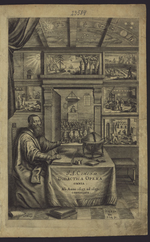 Labyrint světa a ráj srdce představuje alegorický příběh. Vypravěče provází Všezvěd, Všudybud a Mámení a líčí mu krásy světa, on však vidí jen klam, marnost, faleš, bídu a smrt. Východiskem se stává víra. Kniha Orbis pictus (Svět v obrazech) byla nejdříve učebnicí latiny, později i dalších jazyků. Vystupuje zde homo ludens, jenž své schopnosti rozvíjí hrou. Odsud pochází známý Komenského princip schola ludus (škola hrou). Didactica magna (Velká didaktika) je spisem o vyučovacích metodách. Komenský rozděluje výchovu do čtyř stupňů po šesti letech (mateřská škola, povinná školní docházka, gymnázia a univerzity). V Didactice stanovuje deset dodnes obecně platných vyučovacích zásad, např. učení od mládí, přiměřenost látky věku, praktické využití znalostí, posloupnost od jednoduchého ke složitějšímu, stálé opakování nebo zábavnost výuky. Jeden z Komenského citátů říká: Co nevytvoříte v čase, který je Vám vyměřen, nikdo za Vás již nevykoná.