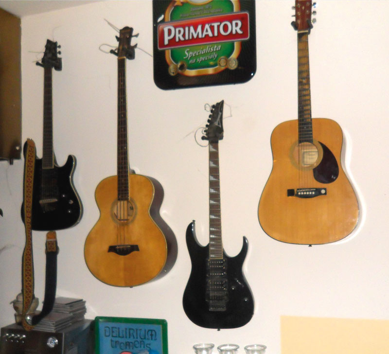 Modrá je dobrá; bigbítová fúrie vás tu chytne za pačesy a nepustí. Po důkladném osvěžení z nabídky 13 druhů piv se můžete dostat jak do nirvány, tak do deliria. Obsluha vlídných týpků, jež by od minuty mohli hrát s kapelou ZZ Top, a jedné dámy, se kvůli nějakému excesu určitě nepohorší. Vedle výčepu se skví na stěně zátiší s kytarami. V zázemí jsou k dispozici bicí a aparatura, stačí rozsvítit reflektory a koncert může začít. Jak Lutherovy teze na kostele ve Wittenbergu, jsou tu připíchnuty na dveřích jména kapel, které tu zahrají: tak třeba 7. 5. zde bude Doggybag band, kde hraje na bicí slavný Karel Jenčík. V klasické pondělí se předvede punková kapela S.Q.O.S.T., jejíž slovní hříčka mě inspirovala k titulku článku. Punk není mrtvý ani v Česku!