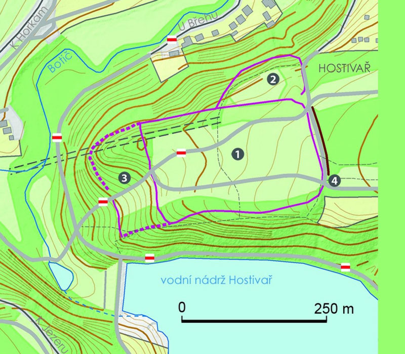 Jižní odlesněný břeh přehrady je vyhrazen plážím, rekreaci a vodním radovánkám, zatímco severní zalesněný břeh svádí k vycházkám a výpravám za poznáním časů dávno minulých, po nichž zde zbylo několik významných památek. Ať již vystoupáte lesoparkem od přehradní nádrže či se vydáte od autobusové zastávky Řepčická, dorazíte na ploché obdélníkové návrší, jehož jižní, západní a severní svahy původně strmě spadaly do údolí meandrujícího Botiče. Vzedmutím hladiny po výstavbě přehrady se monumentalita hradiště poněkud vytratila, ale musíme si uvědomit, že původně plochá a mírně od východu k západu klesající planina pravěkého hradiště čněla nějakých dobrých čtyřicet metrů nad údolí potoka. Ostrožna se směrem k východu otevírala do volné a ploché otevřené krajiny ubíhající směrem k Měcholupům.