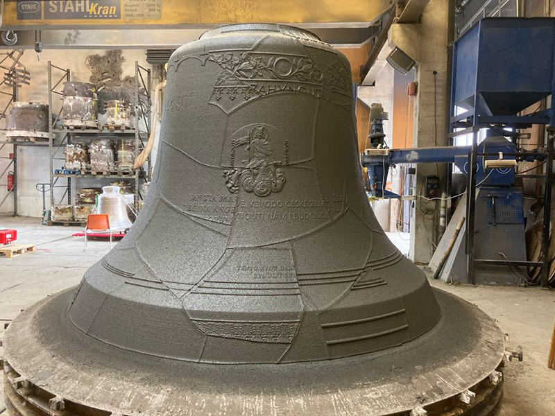 Novému pražskému zvonu požehnal kněz Tomáš Halík. Autoři Kryštof Čižinský a Jakub Kamínek v reliéfní výzdobě propojují v nový funkční celek současné i ztracené. Část pláště je poskládáno z fragmentů skutečných ztracených zvonů. Nápis na plášti sděluje: „Promlouvám hlasem tisíců zvonů, které umlčela válka.“