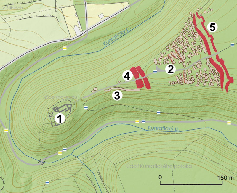 Od stanice metra C Roztyly se k táboru dostaneme po třech a půl kilometrech chůze po modré turistické značce nebo můžeme vyrazit kratší cestou (1 km) od zastávky autobusu Zelené domky vzhůru do kopce. Tábor leží ve východním předpolí Nového hradu u Kunratic, oblíbeném to sídle krále Václava IV., který zde i 16. srpna 1419 zemřel. O areálu vlastního opevněného sídla si povíme někdy příště a dnes zaměříme svou pozornost na pozoruhodné doklady krátkodobého třítýdenního obležení hradu z přelomu let 1420 a 1421.