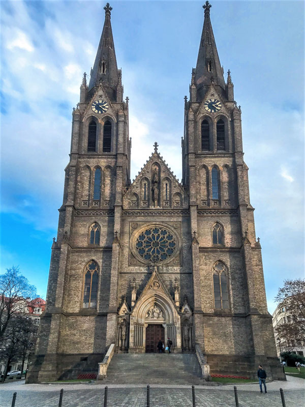 kostela svaté Ludmily v Praze, stavba 1888–1892, architekt Josef Mocker