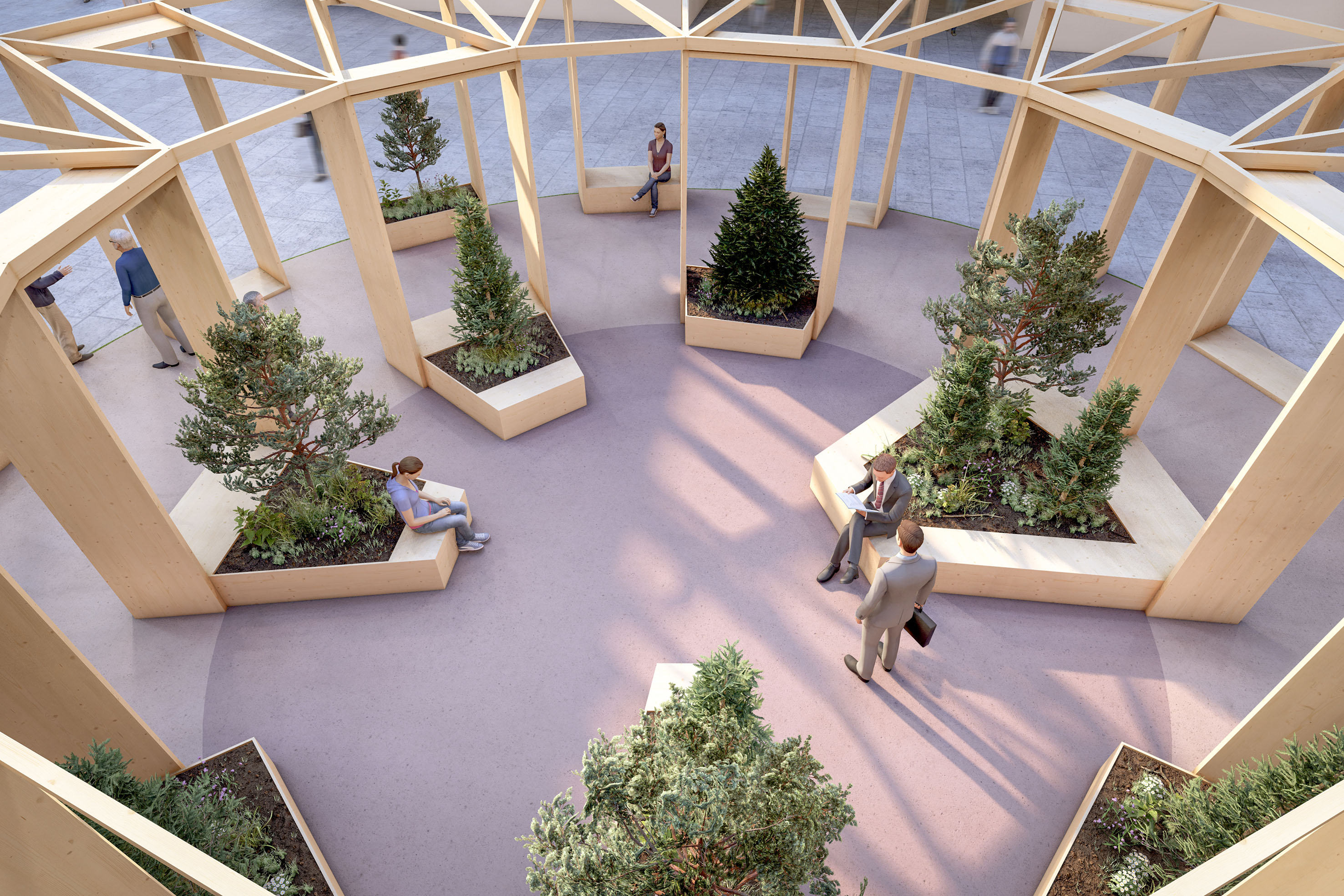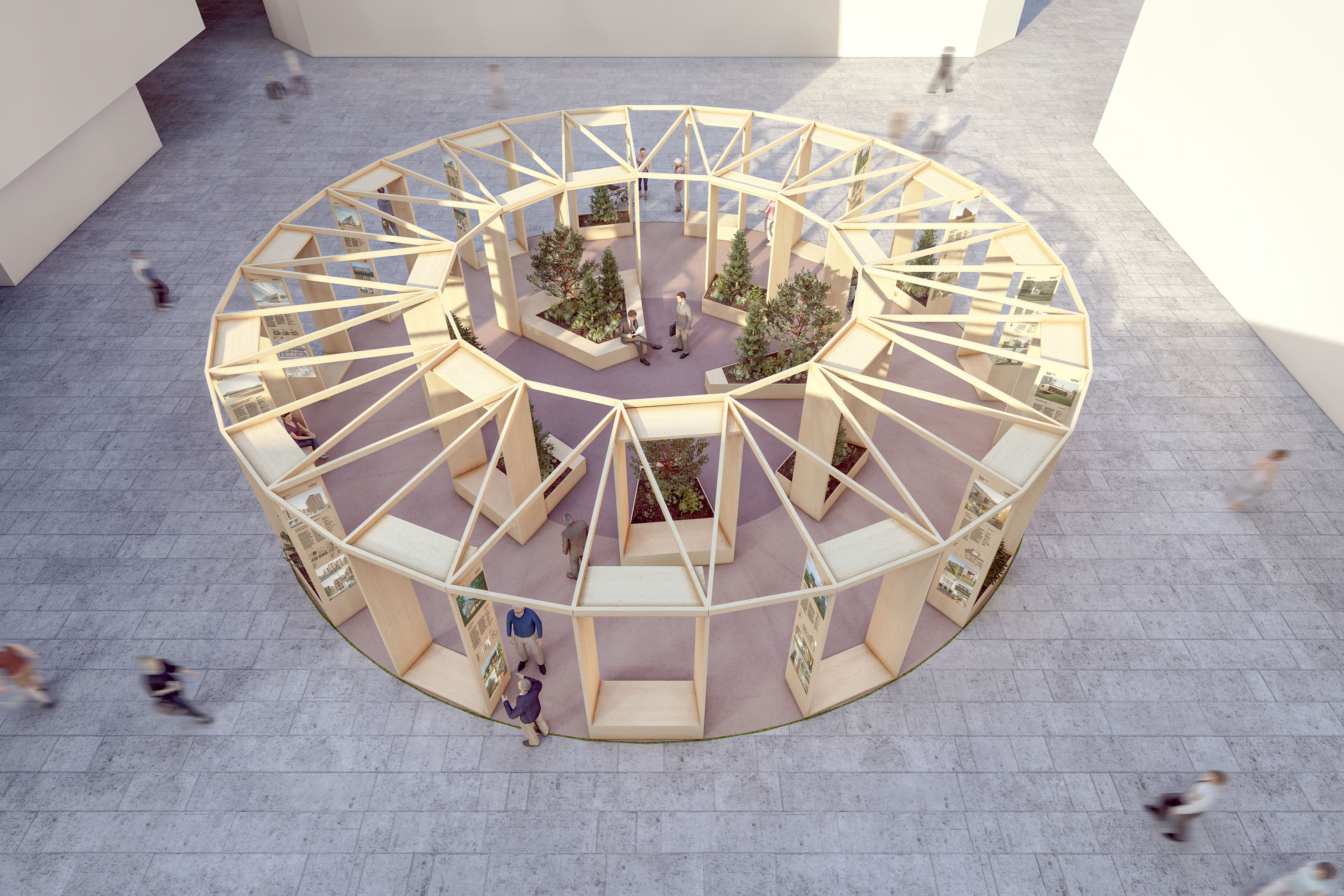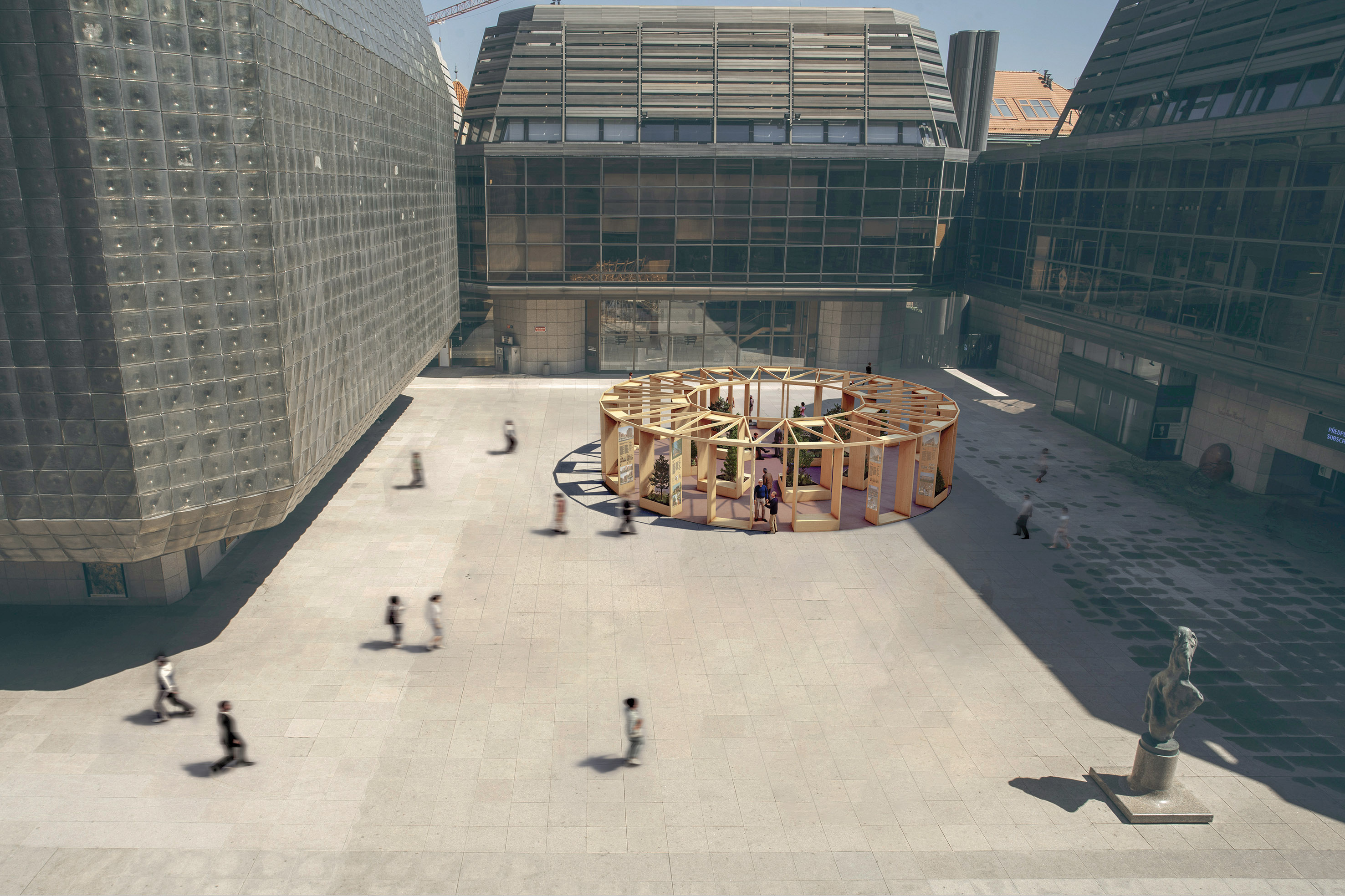 Výstava více jak třiceti nejvýznamnějších staveb ze dřeva, které v posledním období vznikly v Čechách a na Slovensku, bude umístěna na atraktivní dřevěné instalaci, která ozvláštní veřejný prostor náměstí a nabídne kolemjdoucím relaxační zónu s posezením uvnitř dřevostavby v českém lese. Návrhu instalace se letos ujali architekti z atelieru Prodesi / Domesi spolu se zahradními architekty z atelieru Partero. Jejich společnou prvotní snahou bylo prostor náměstí vhodně doplnit a zvýšit tak jeho kvalitu pro lidi. Hlavní inspirací jim byl motiv kruhu, který má hlubokou symboliku a který bude osázený zelení.