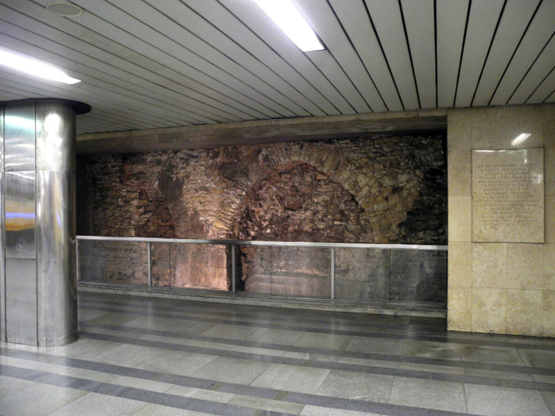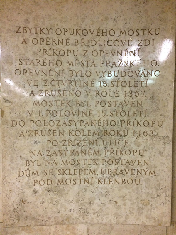 U příležitosti padesátiletého výročí zahájení provozu pražského metra nelze nevzpomenout na jeden z nejznámějších archeologických nálezů prezentovaných přímo v místě jeho odkryvu. Oblouk středověkého mostu přes příkop staroměstského opevnění ve vestibulu stanice metra trasy A v dolní části Václavského náměstí dal dokonce celé stanici, i blízkému okolí, své jméno.