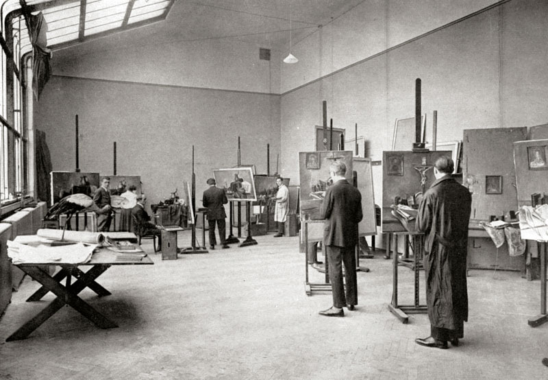 Tímto byl položen základ k nejstarší umělecké škole u nás, Akademii výtvarných umění. Prvním ředitelem se stal bavorský malíř Josef Bergler, který kladl především důraz na kreslířskou průpravu v duchu dobového klasicismu. Ve 40. letech 19. století došlo k reorganizaci školy a výuka se orientovala na tvorbu podle živého modelu a módní historickou malbu, byla rozšířena o přednášky anatomie, dějin umění a architektury. Na konci 19. století se škola dostala do permanentní umělecké a finanční krize, k čemuž přispívaly i zastaralé učební metody a konzervativní umělecké názory. Za této situace došlo k zásadní sérii reforem, iniciovaných rektorem školy malířem Juliem Mařákem, který také posílil profesorský sbor o výrazné umělecké osobnosti té doby – Vojtěcha Hynaise, Václava Brožíka, Františka Ženíška nebo Josefa Václava Myslbeka. V roce 1896 došlo k zestátnění akademie a povýšení na vysokou školu. Spolu s vídeňskou a krakovskou akademií se stala jednou ze tří veřejných státních vysokých škol v Rakousku‑Uhersku, které poskytovaly všeobecné vysokoškolské vzdělání v oboru malířství a sochařství. V roce 1919 došlo k ustanovení nového názvu – Akademie výtvarných umění v Praze. Předtím se již škola natrvalo usídlila v nové budově na Letné.