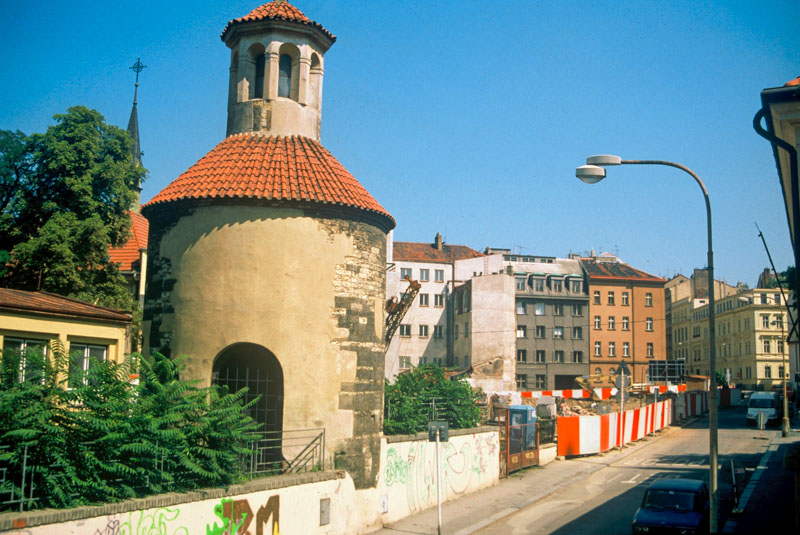 Výzkum v bezprostředním okolí rotundy (výstavba nového schodiště) odkryl složitou a komplikovanou superpozici zaniklých přístaveb rotundy od 13. století až po její zaniklou raně barokní loď a velké množství kostrových hrobů datovatelných od 12. století až do období likvidace hřbitova na samotném konci 18. století. Výzkum rozsáhlé plochy východně od rotundy v místě Longin Business Center zachytil pokračování pohřebiště vymezeného symbolickým žlabem, ve kterém byla zřejmě osazena dřevěná palisáda.