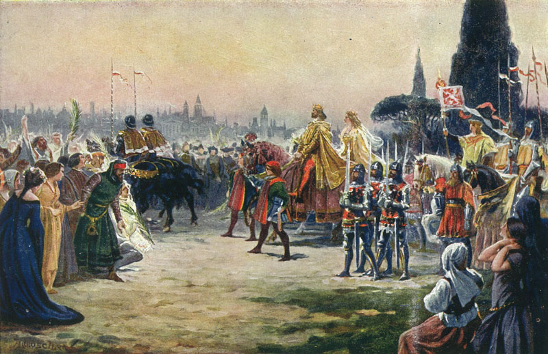 Na den sv. Václava roku 1354 se Karel vydal z Horní Falce do Itálie. V chrámu sv. Ambrože v Miláně přijal 6. ledna 1355 železnou lombardskou korunu. Být lombardským či italským králem byla podmínka císařské korunovace od dob Karla Velikého. Říšské a české oddíly s královnou Annou Svídnickou a arcibiskupem Arnoštem z Pardubic se setkaly s Karlem v Pise v únoru 1355. Před branami Říma Karel stanul s 4 000 rytíři 2. 4. 1355 a císařská korunovace se konala 5. dubna.