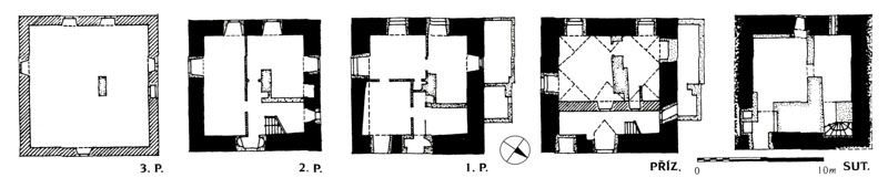 Mohutná dvacet metrů vysoká obytná věž tvrze na čtvercovém půdorysu 10,5 x 10,5 metru je třípatrová a má gotické jádro. Horní patro vynesené na krakorcích bylo kryto valbovou střechou. V suterénech a v přízemí se dochovaly renesanční klenby, vyšší patra byla plochostropá. Gotické okenní ostění ze 14. století se dochovalo v severní fasádě v úrovni prvního patra. Jádro stavby pochází z poslední čtvrtiny 14. století, ale okolo roku 1562 prošla výraznou renesanční přestavbou. Tu indikují především rozsáhlé omítky se sgrafitovými kvádry (dnes obnovené) a vysazené mladší třetí patro, které patrně nahradilo obdobnou starší konstrukci.
