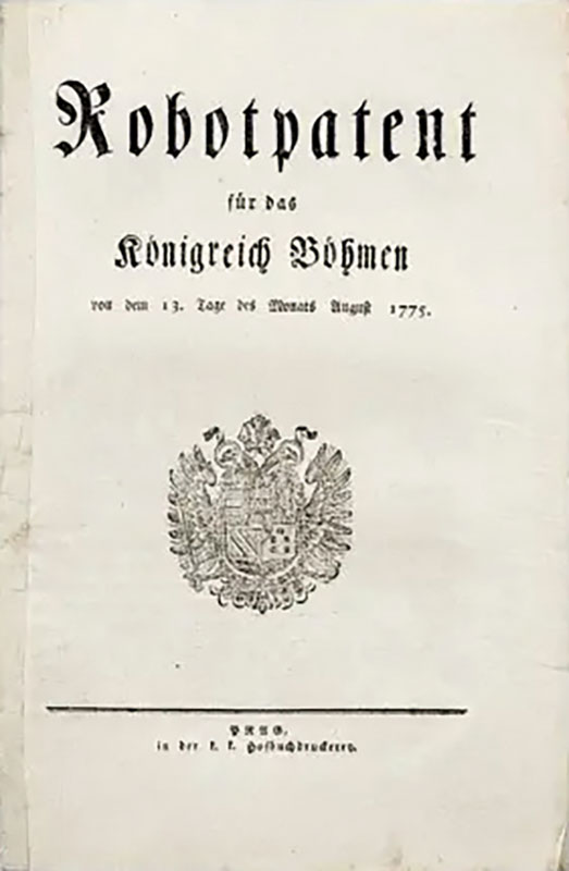 Situace na českém venkově v polovině 70. let 18. století pod feudálním stylem vedení nebyla veselá. Neplacená práce sedláků pro šlechtu zabírala už sto a více dnů ročně, daně byly desetkrát vyšší než před třicetiletou válkou a hladomor v letech neúrody 1770–1772 zkosil 10–15 % tehdejšího obyvatelstva. Navíc se mezi sedláky rozšířila falešná zpráva o zrušení roboty, která zažehla selské lidové povstání. „Sedláci od Chlumce“ nedopadli dobře, povstání bylo potlačeno, ale císařovna přece jen trochu povolila a 13. srpna pro Čechy a 7. září pro Moravu vyhlásila robotní patent. Ten rozdělil poddané do jedenácti tříd podle majetku, stanovil délku robotního dne na osm hodin v zimě a dvanáct v létě, nejnižší robotní povinnost na třináct dní ročně a nejvýše tři dny v týdnu. Zajímavé bylo, že si poddaní mohli zvolit starou úpravu, nebo nový návrh. Když zvolili novou, hned o rok později jim přibyly další povinnosti ve formě poplatků nebo nové roboty za dosud bezplatné užívání vrchnostenských lesů a pastvin. Takže vlastně tak trochu z bláta do louže. Navíc tím byla porušena proklamace patentu z roku 1775 o zákazu zvyšování povinností poddaných. Přesto se jednalo o posun k lepšímu, který navazoval na předchozí patenty. Ke zrušení i nadále povinné roboty v roce 1848 byla ale ještě dlouhá cesta…