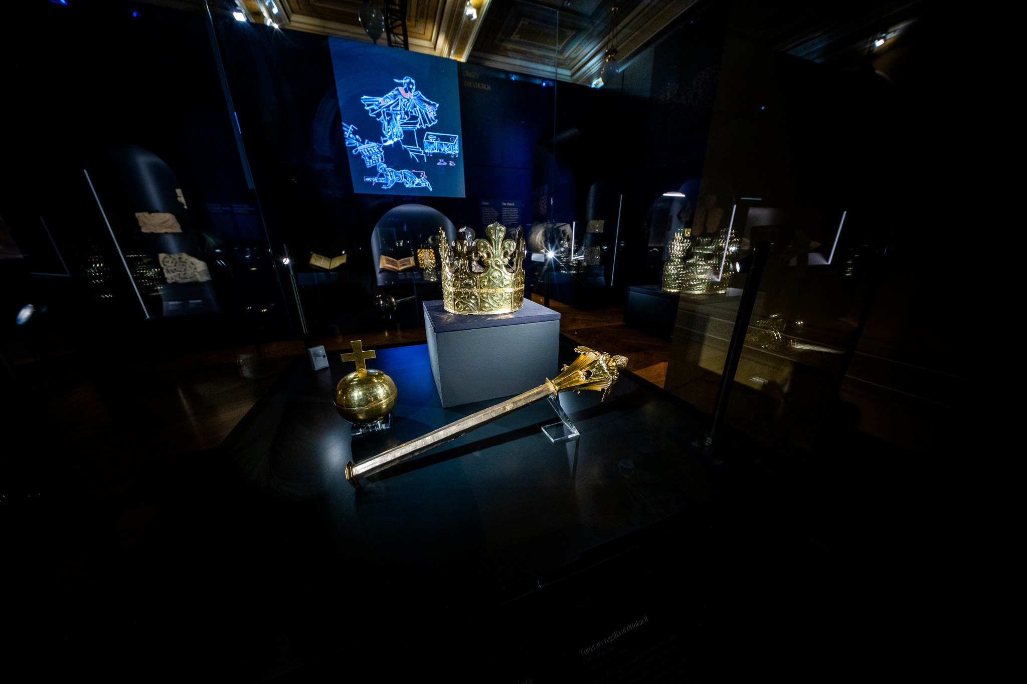Vrchol přemyslovské moci představuje vláda Přemysla II. Otakara, panovníka evropského významu, jehož říše sahala od Čech až k Jadranu. Jeho vláda je však zároveň příběhem pádu. Ambice vyústila v tragický konec na Moravském poli roku 1278. Pohřební klenoty pocházející z jeho hrobu, koruna, žezlo a jablko, patří k nejpůsobivějším exponátům výstavy a připomínají pomíjivost i té největší světské moci.