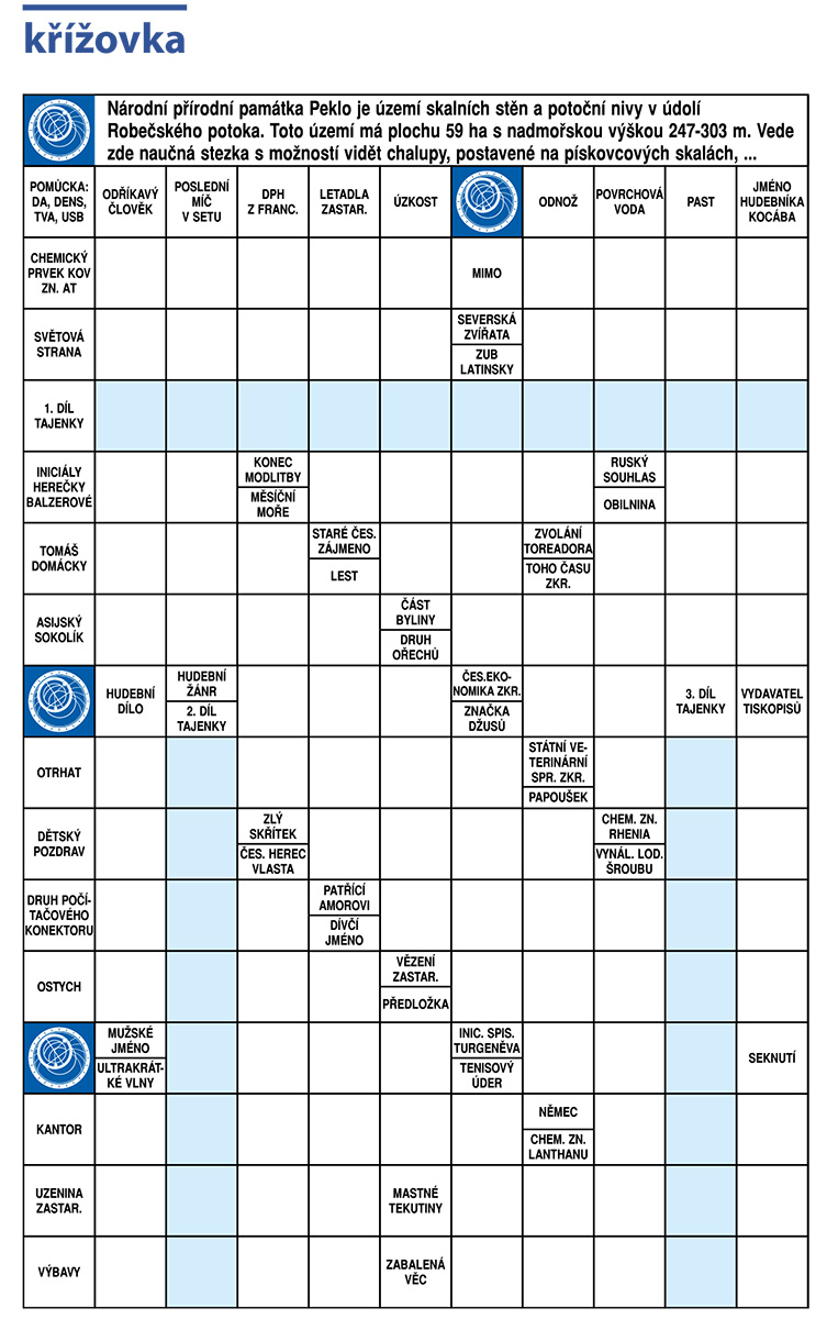 Své odpovědi na tajenku křížovky nám posílejte do 10. června z formuláře nebo poštou na adresu redakce. Tři výherci obdrží od redakce výhru e‑mailem.
